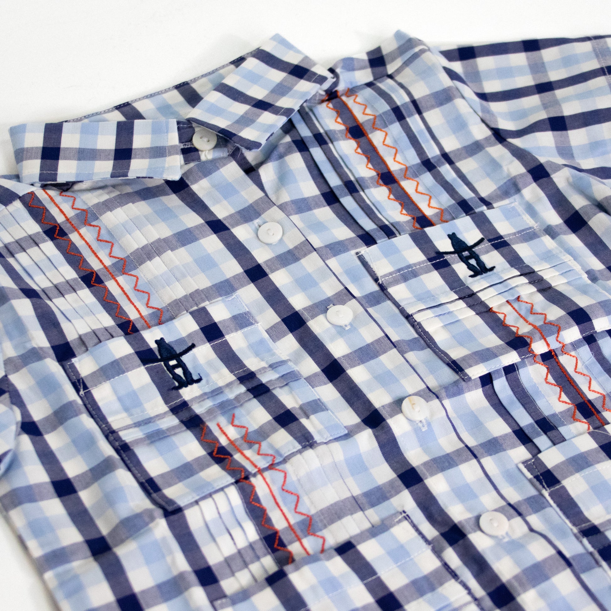 Youth Guayabera - Navy Windowpane